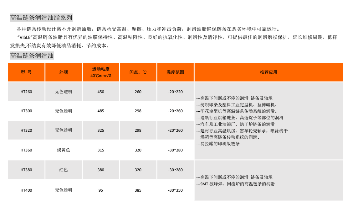 品    牌 VISLE(威斯力) 物料名稱 高溫鏈條油